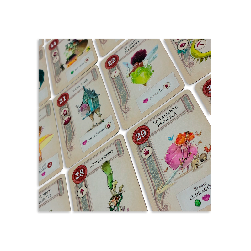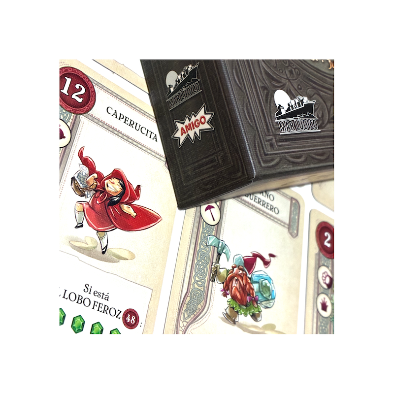 Juega a lo largo de tres capítulos con la compañía de personajes de cuentos, historias y leyendas. Primero, elige sabiamente las cartas de tu mano en un “draft”. A continuación, juega para ganar bazas, utilizando las habilidades de los personajes para conseguir puntos. Por último, comprueba la puntuación de tus cartas y si puedes conseguir puntos extra, con algunos “combos”.