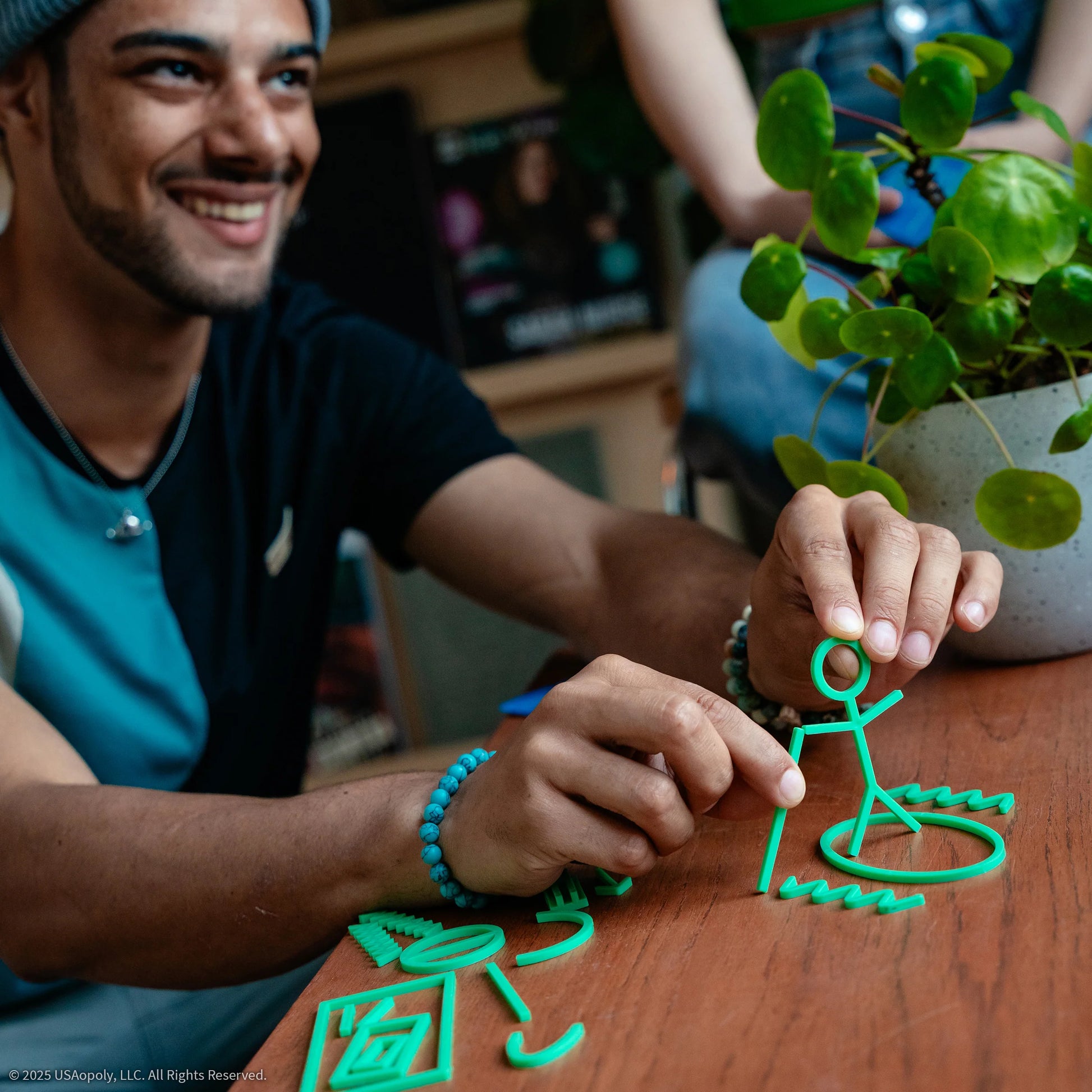 ¿Aburrido de las charadas? ¿Terrible para dibujar? ¡Entonces Glyphics es para ti! Simplemente elige una palabra de tu carta, créala usando las formas que necesites y sé el más rápido en adivinar para ganar un punto. Con una gran variedad de piezas de juego y una amplia gama de palabras, cada noche de juego se convierte en una aventura de mesa única y diferente cada vez.