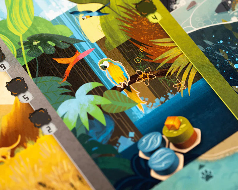 En Harmonies, construyes paisajes colocando fichas de colores y creas hábitats para tus animales. Para ganar la partida, deberás integrar los hábitats en tus paisajes de forma inteligente y lograr que la mayor cantidad posible de animales se establezca en ellos.