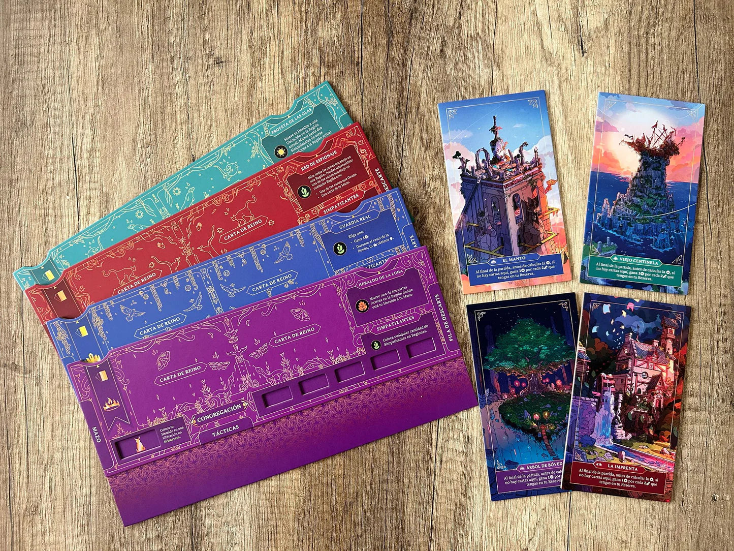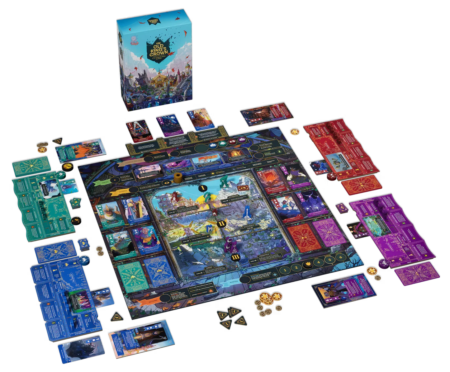 The Old King's Crown es un juego de mesa sobre la realeza, los rebeldes y las artimañas. El juego se centra en un juego estratégico de bajo riesgo, con pujas, faroles y gestión de manos. Incluye combinaciones de cartas y creación de motores, poderes de jugador únicos y control de área.