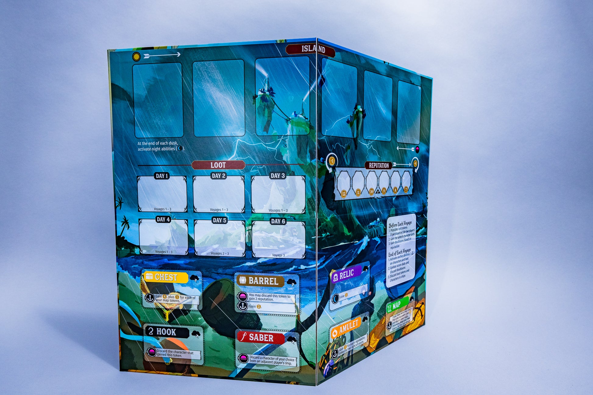 Libertalia se publicó originalmente en 2012. Diez años después, celebramos los cimientos de aquel diseño original con una edición revisada y ampliada, que incluye arte completamente nuevo, 40 personajes por jugador, un sistema de reputación para resolver empates, fichas de botín premium, un modo en solitario completo, ¡y mucho más!