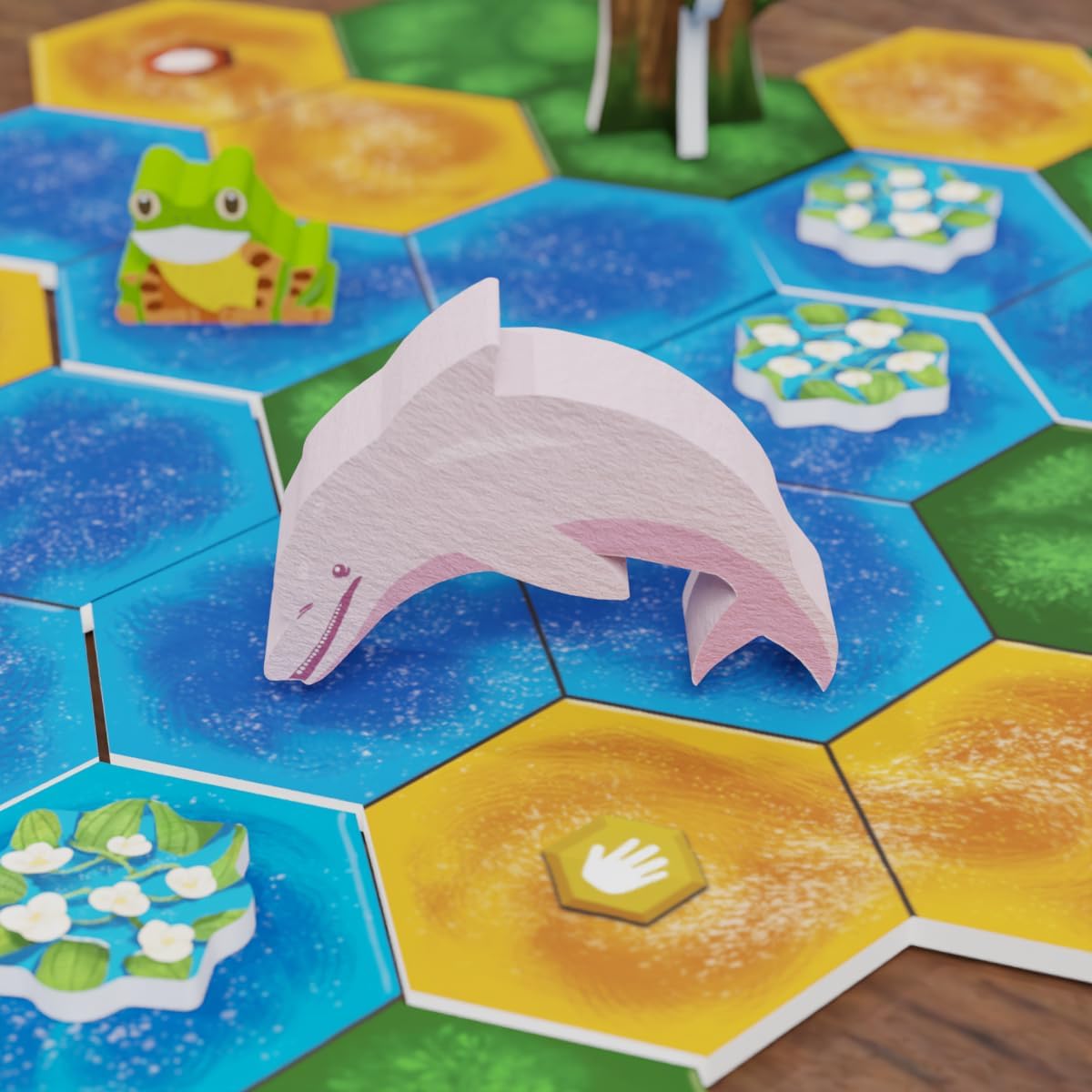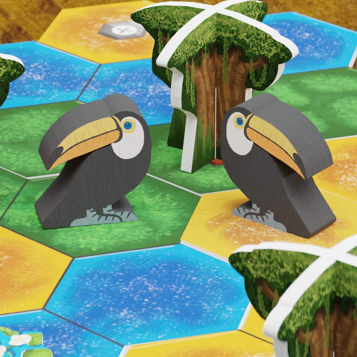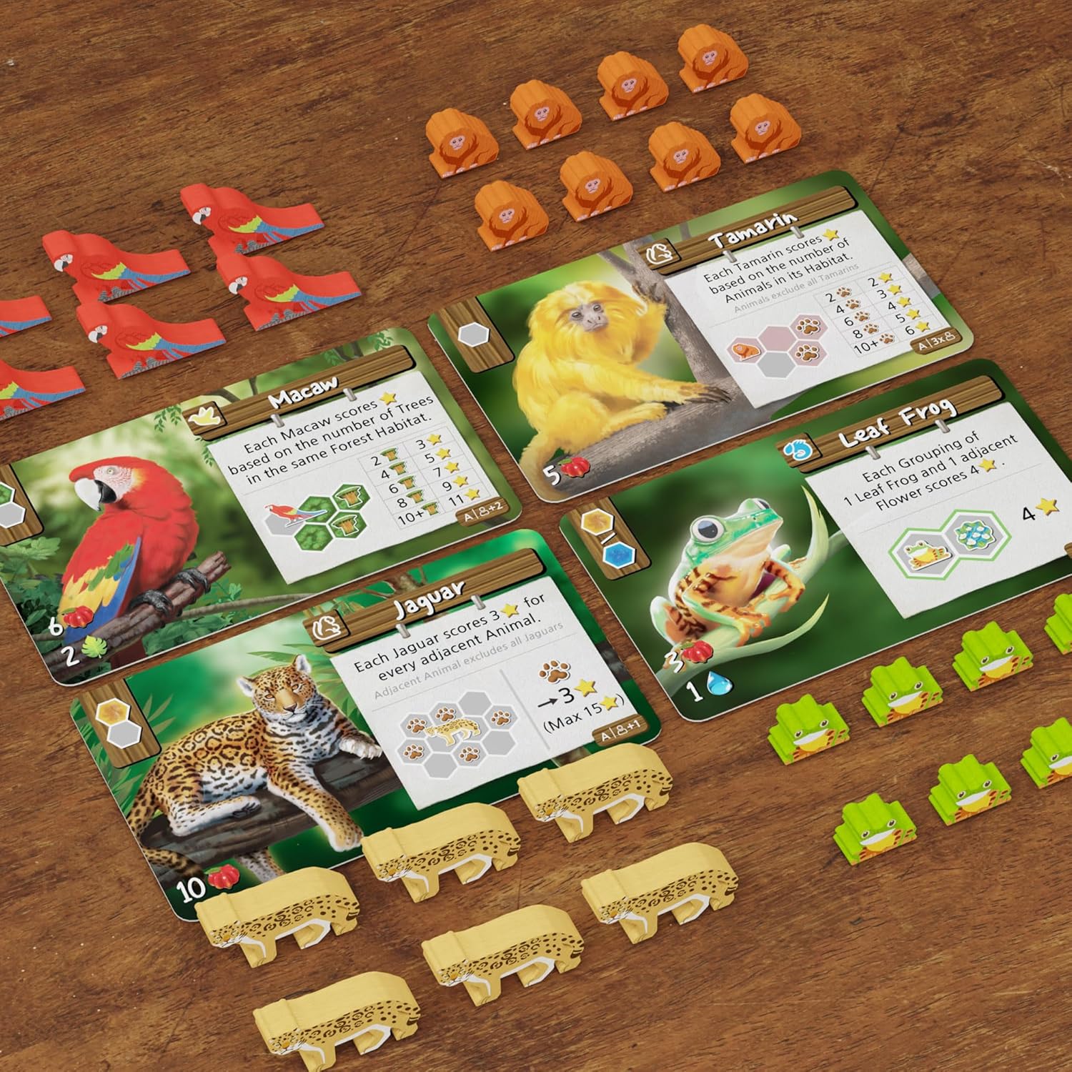 Construye tu propia y próspera selva descubriendo una gran variedad de animales salvajes, insectos y plantas en este hermoso juego de mesa.