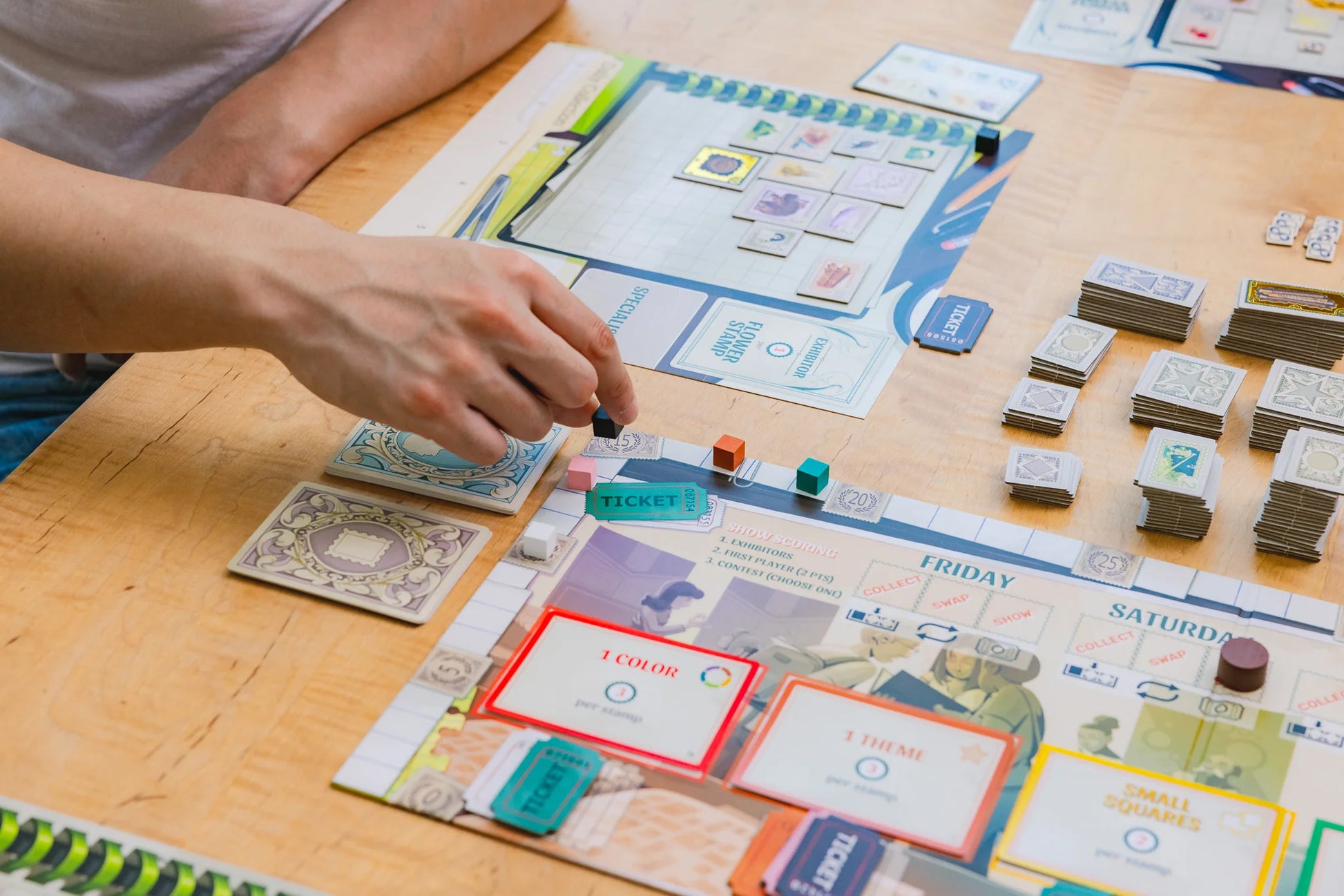 El arte de coleccionar sellos no consiste solo en acumular muchos, sino en reunir sellos de alta calidad, incluyendo los raros sellos dorados en relieve. Este juego de 3 rondas para 1 a 5 jugadores te invita a conocer a otros coleccionistas, crear una colección hermosa y bien enfocada, y mostrarla en una serie de concursos. ¡Hazlo bien y podrías llevarte el gran premio del Stamp Swap de este año!