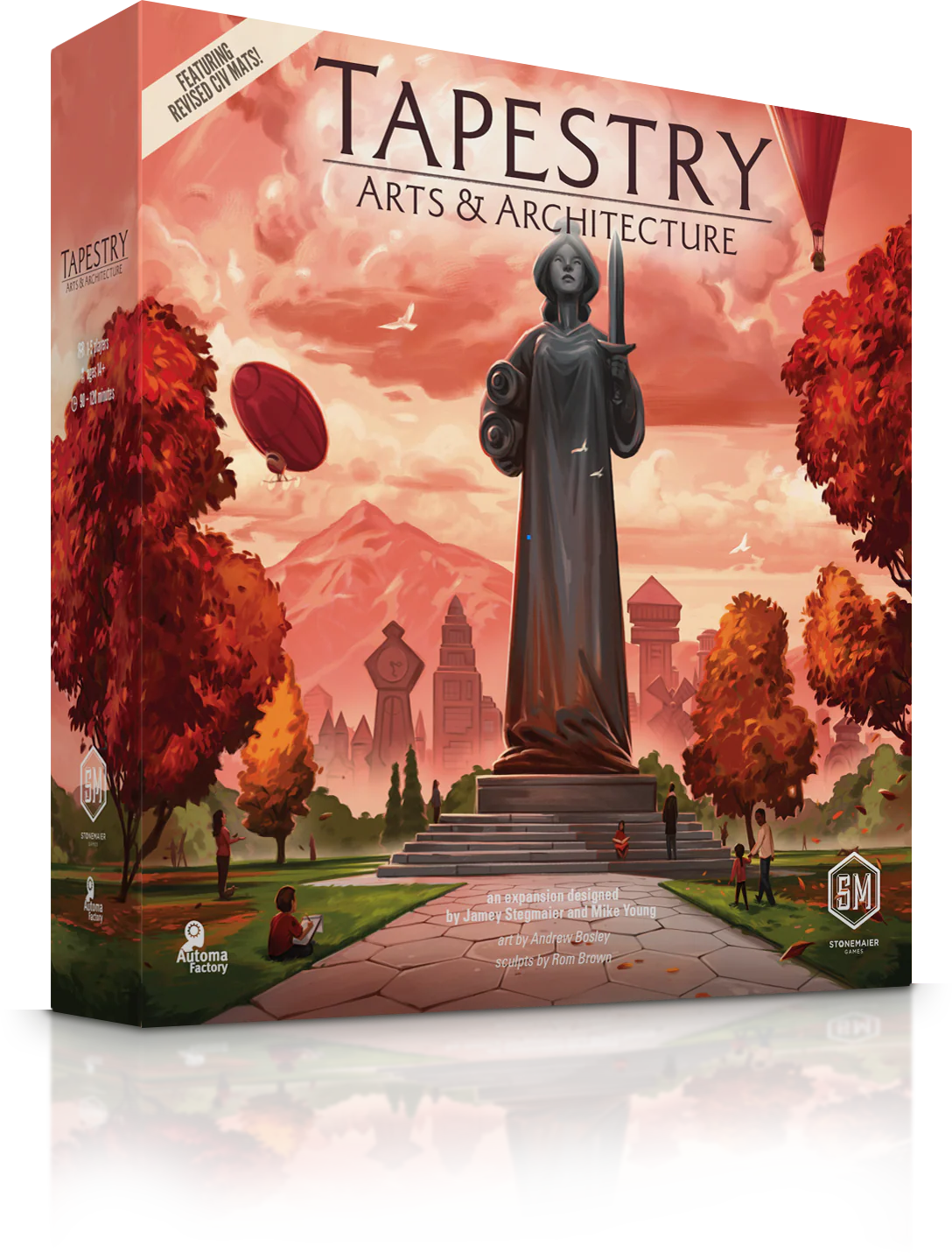 Elige entre una variedad de nuevos tableros de capital, un nuevo track de progreso con nuevos tipos de cartas y losetas, además de más civilizaciones (versiones revisadas), cartas de tapiz, cartas de tecnología y cartas de monumentos en esta segunda expansión de Tapestry.